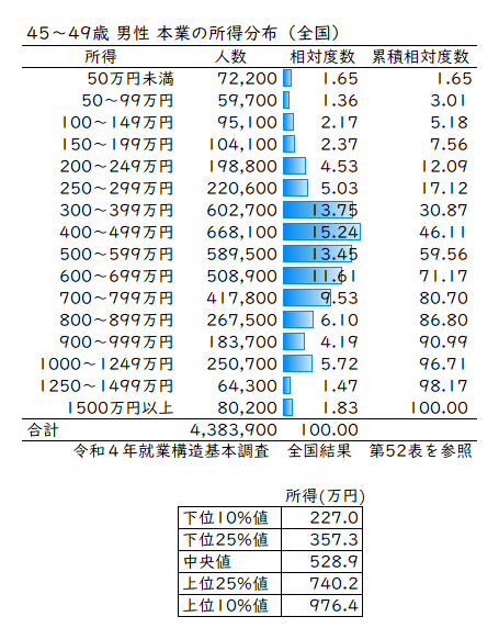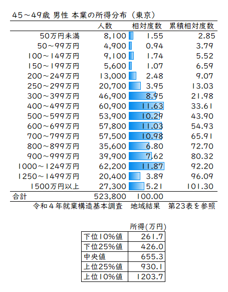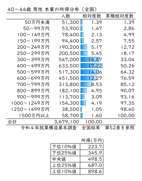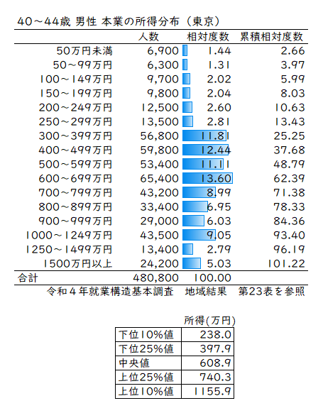 新しい統計を使って40代男性の所得分布表を作ってみた。